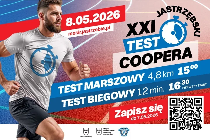 Na stadionie przy Harcerskiej znów zrobi się głośno od kroków, oddechów i sportowej rywalizacji z samym sobą. Miejski Ośrodek Sportu i Rekreacji w Jastrzębiu-Zdroju zaprasza na XXI Jastrzębski Test Coopera, czyli próbę, w której o formie decyduje nie deklaracja, lecz 12 minut ruchu. Dla tych, którzy wolą spokojniejsze tempo, przygotowano też marszową wersję na 4,8 km, możliwą również z kijami Nordic Walking. Zgłoszenia trwają tylko do końca 7 maja, więc miejsc może zabraknąć szybciej, niż się wydaje.